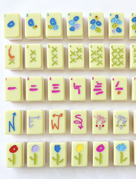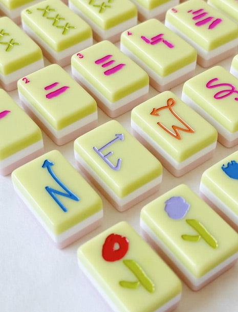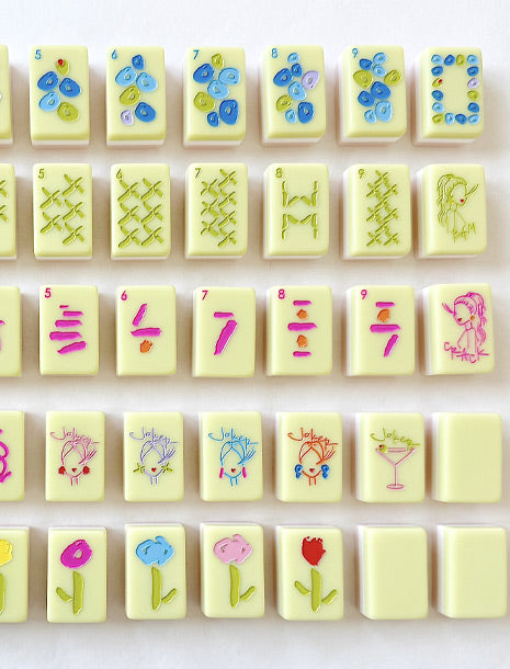 Play Mahjong in style! Our first set of tiles is clean, crisp, easy to read, and hopefully brings joy to those who play. The colors are vibrant, yet something you won't grow weary of by game 4. Tiles are 1.25" x 0.87" x 5/8"